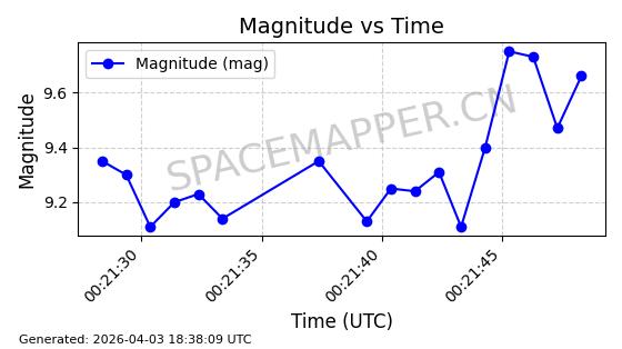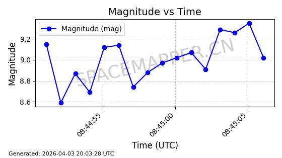 | ONEWEB-0015 | 61594 | 61594 | 2024-10-20 同日期轨道 2024-188A 同批次轨道 | 在轨 | 110分钟 | 87.8904 | 1216.691 | 1218.669 | 0.0001302 | 2026-04-03 07:26:00 | ||