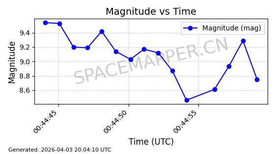 | ONEWEB-0688 | 61596 | 61596 | 2024-10-20 同日期轨道 2024-188C 同批次轨道 | 在轨 | 109分钟 | 87.9174 | 1193.024 | 1194.388 | 0.0000900 | 2026-04-03 07:27:03 | ||