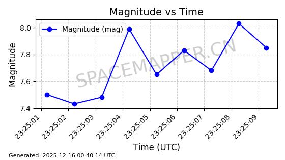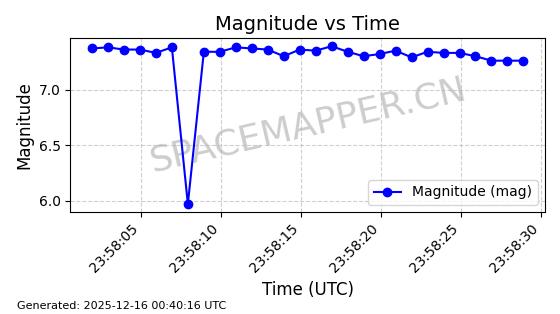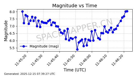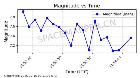 | IRIDIUM 71 | 25320 | 25320 | 1998-05-02 同日期轨道 1998-026B 同批次轨道 | 在轨 | 100分钟 | 86.3976 | 752.665 | 755.631 | 0.0002079 | 2025-12-13 19:30:00 | ||