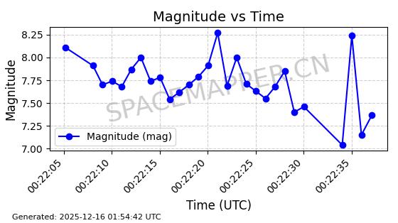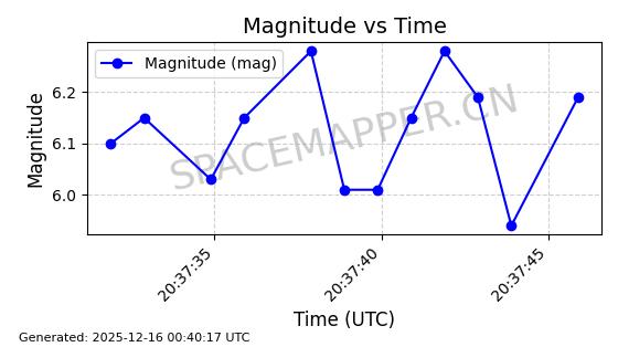 | DUMMY MASS 1 | 24925 | 24925 | 1997-09-01 同日期轨道 1997-048A 同批次轨道 | 在轨 | 97分钟 | 86.3347 | 603.209 | 610.273 | 0.0005056 | 2025-12-13 16:19:48 | ||