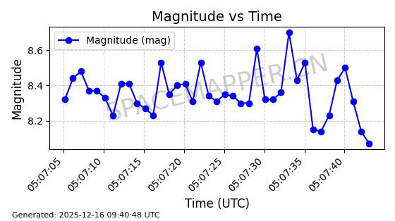 | IRIDIUM 177 | 56727 | 56727 | 2023-05-20 同日期轨道 2023-068T 同批次轨道 | 在轨 | 97分钟 | 86.1969 | 627.045 | 630.269 | 0.0002300 | 2025-12-14 16:51:44 | ||