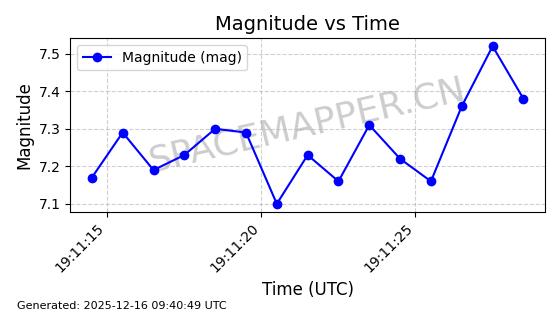 | IRIDIUM 170 | 43930 | 43930 | 2019-01-11 同日期轨道 2019-002J 同批次轨道 | 在轨 | 98分钟 | 86.6086 | 652.311 | 655.525 | 0.0002285 | 2025-12-14 18:27:03 | ||