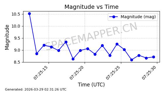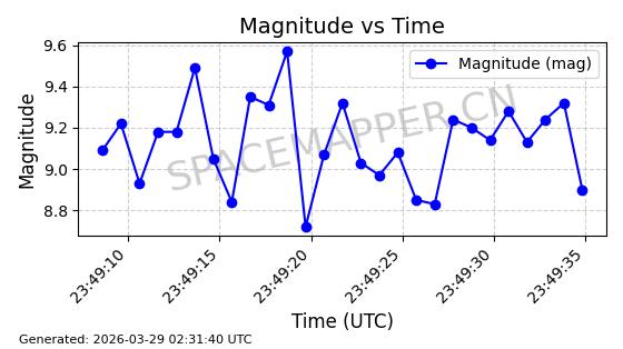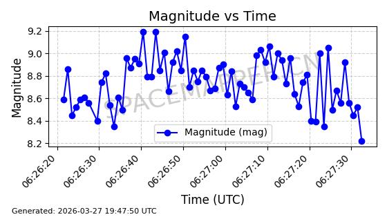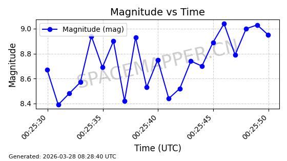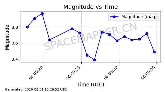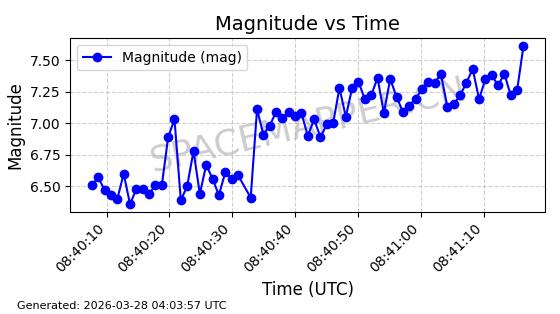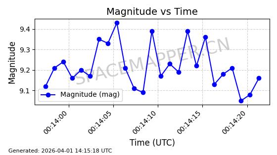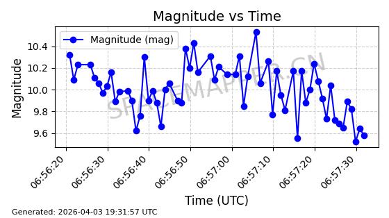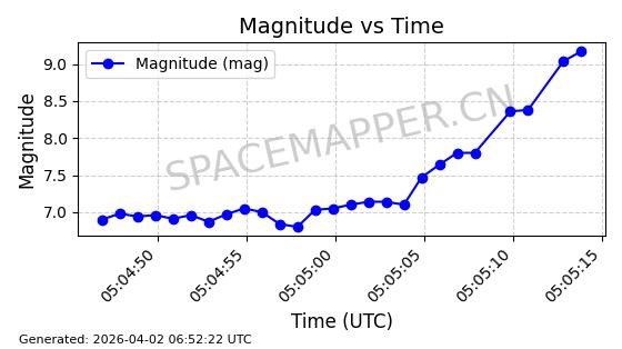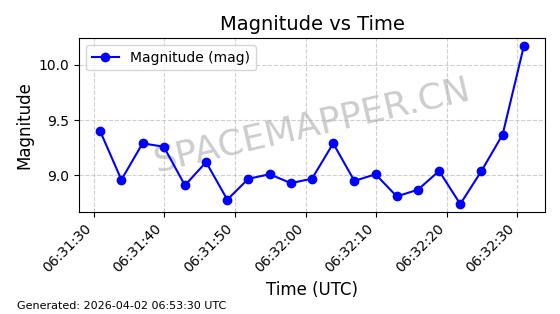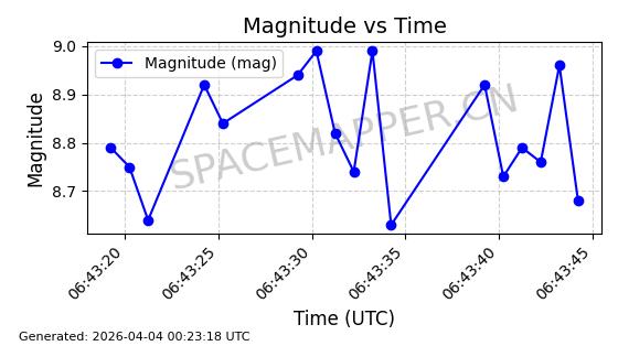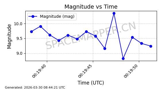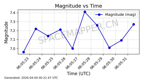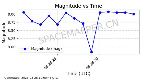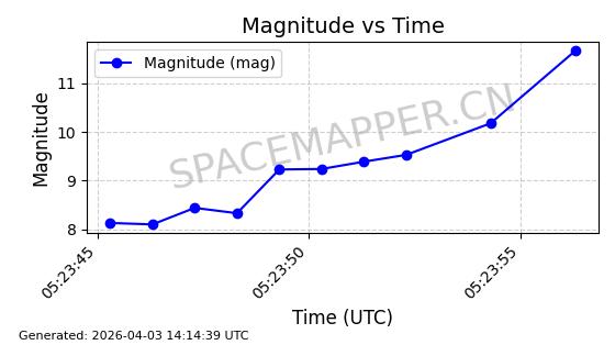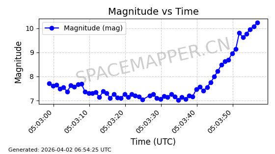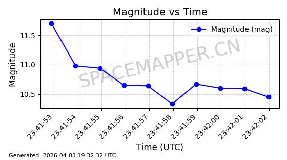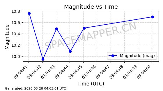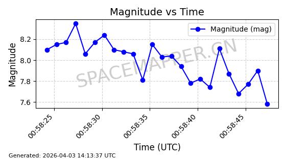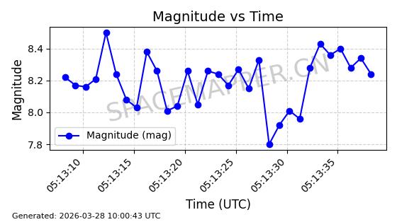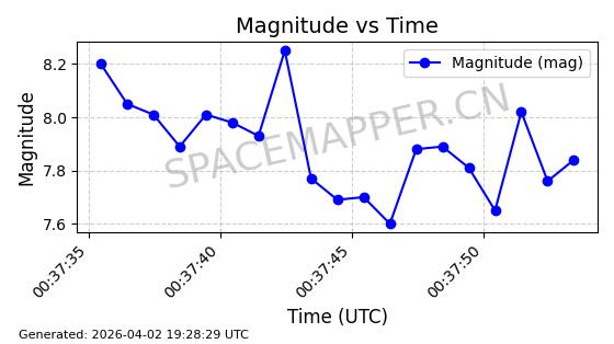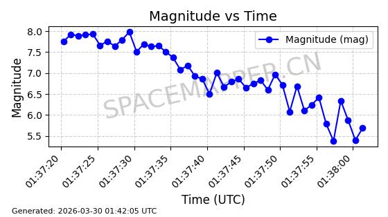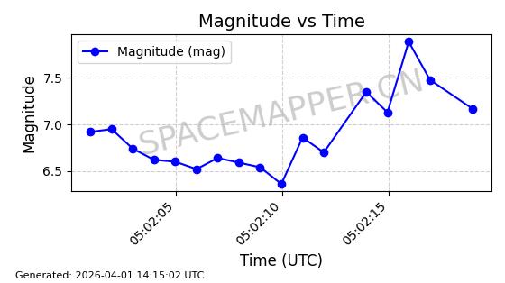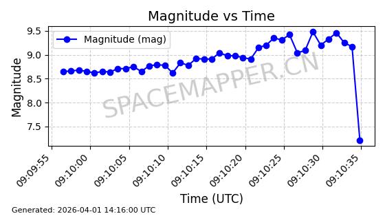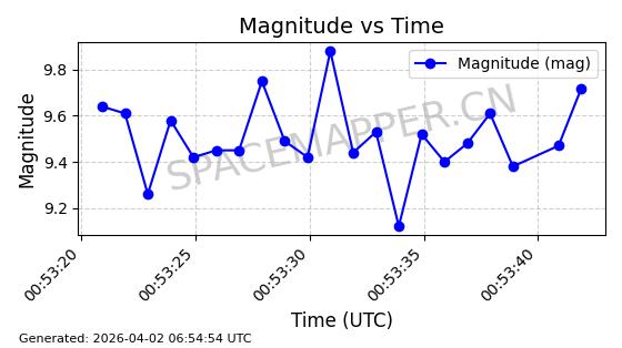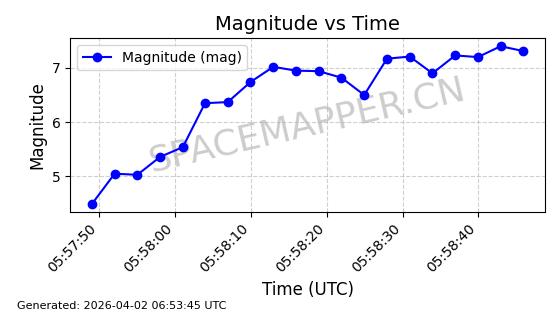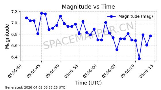 | 卫星名称 | AOE ID | NORAD ID | 发射日期 国际编号 | 在轨状态 | 轨道周期 | 轨道倾角 (度) | 近地点 (Km) | 远地点 (Km) | 偏心率 | 更新时间 (UTC) | 近期光变曲线 | 服务 |