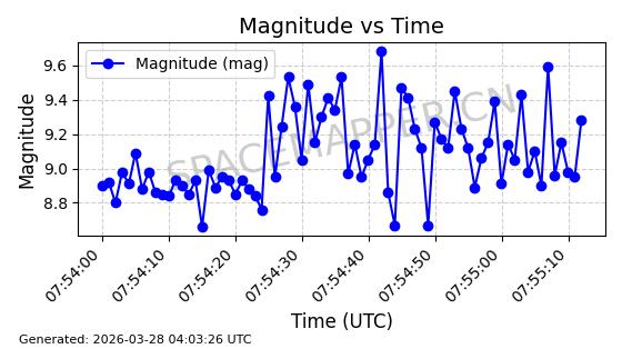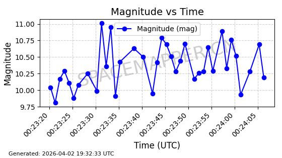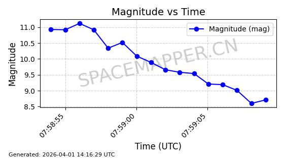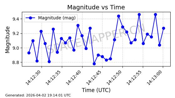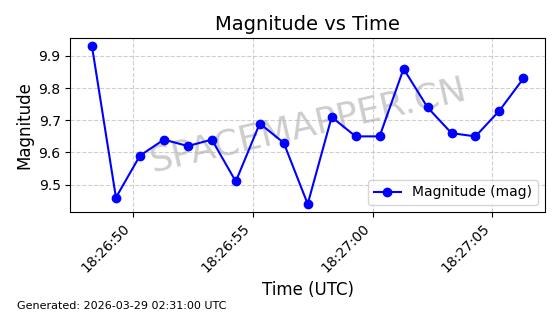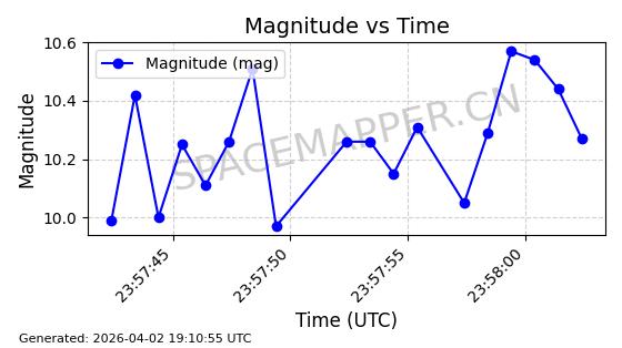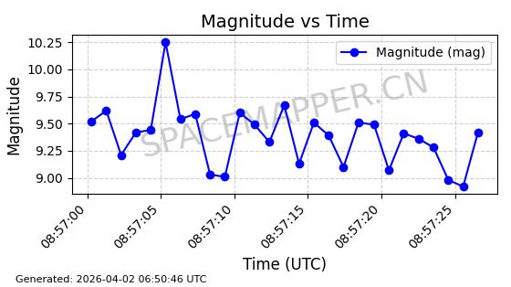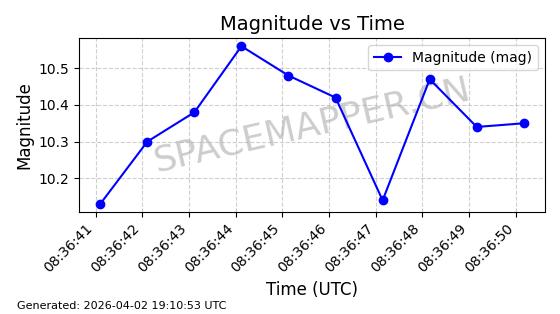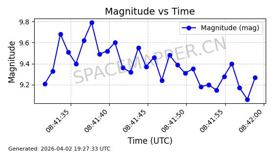 | COSMOS 1959 | 19324 | 19324 | 1988-07-18 同日期轨道 1988-062A 同批次轨道 | 在轨 | 105分钟 | 82.9543 | 952.458 | 1001.282 | 0.0033190 | 2026-04-02 06:47:51 | ||
