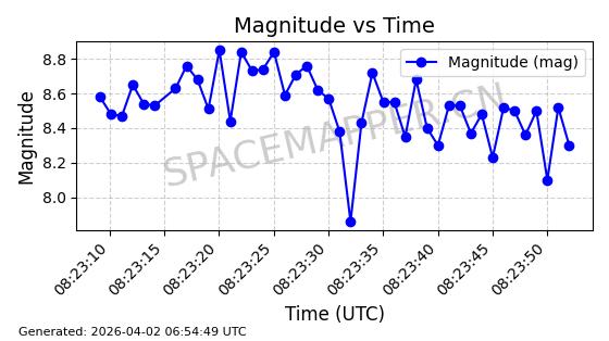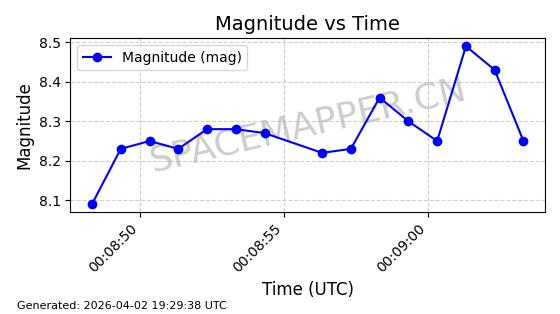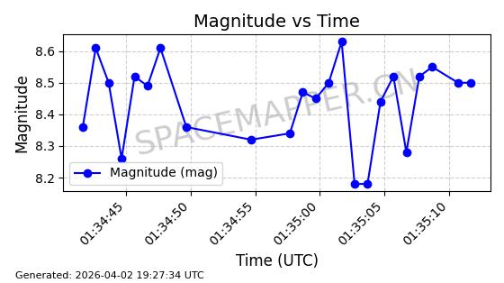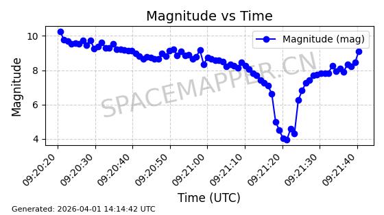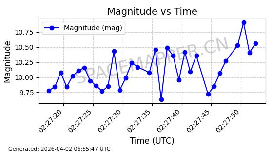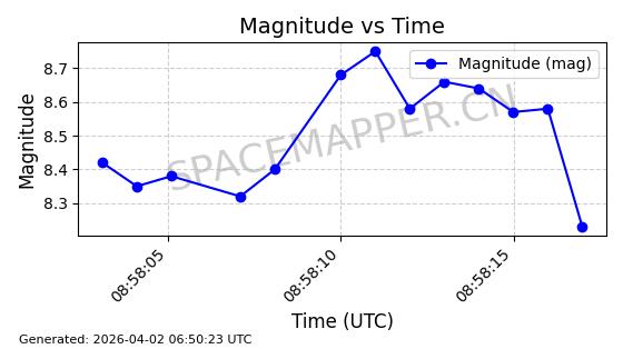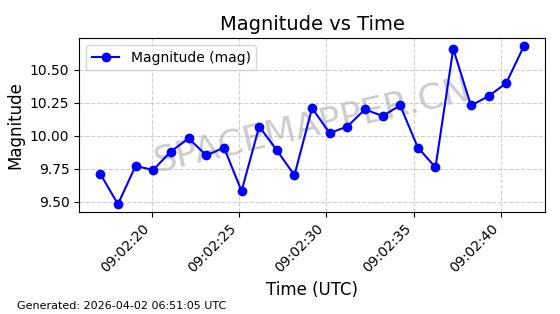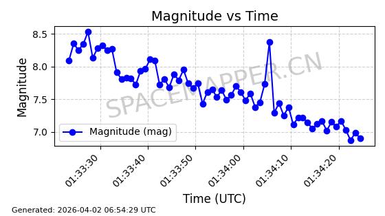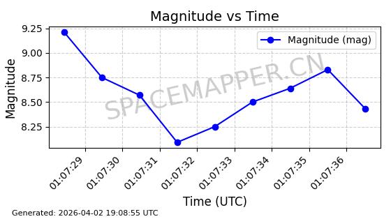 | COSMOS 1864 | 18160 | 18160 | 1987-07-06 同日期轨道 1987-057A 同批次轨道 | 在轨 | 105分钟 | 82.9338 | 954.703 | 1002.875 | 0.0032738 | 2026-04-02 07:02:37 | ||