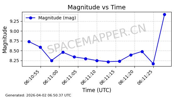 | COSMOS 996 | 10744 | 10744 | 1978-03-28 同日期轨道 1978-031A 同批次轨道 | 在轨 | 105分钟 | 82.9284 | 949.384 | 1001.634 | 0.0035526 | 2026-04-02 05:42:02 | ||