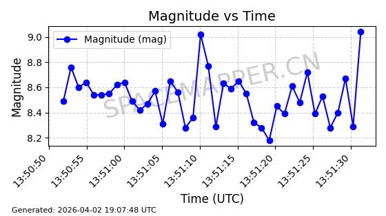 | COSMOS 1349 | 13127 | 13127 | 1982-04-08 同日期轨道 1982-030A 同批次轨道 | 在轨 | 105分钟 | 82.9311 | 963.363 | 1006.963 | 0.0029605 | 2026-04-02 07:33:37 | ||