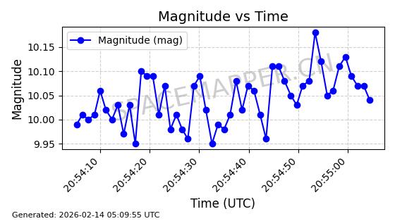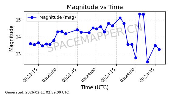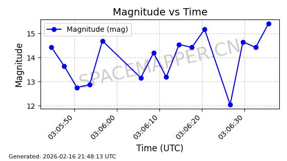 | GALAXY 35 | 54741 | 54741 | 2022-12-13 同日期轨道 2022-170A 同批次轨道 | 在轨 | 1436分钟 | 0.0175 | 35778.812 | 35794.034 | 0.0001805 | 2026-02-16 05:38:40 | ||