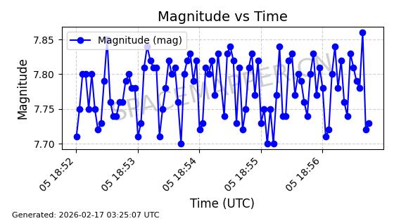 | INTELSAT 17 | 37238 | 37238 | 2010-11-26 同日期轨道 2010-065B 同批次轨道 | 在轨 | 1436分钟 | 0.0297 | 35775.585 | 35797.765 | 0.0002630 | 2026-02-16 04:41:39 | ||