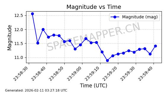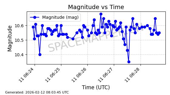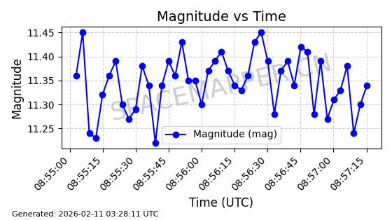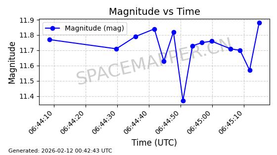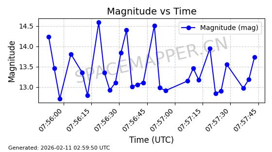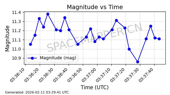 | INTELSAT 11 (PAS 11) | 32253 | 32253 | 2007-10-05 同日期轨道 2007-044B 同批次轨道 | 在轨 | 1454分钟 | 3.2486 | 36107.114 | 36158.188 | 0.0006007 | 2026-02-16 05:47:24 | ||
