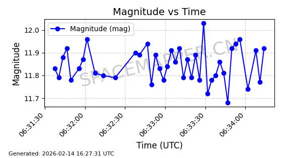 | INTELSAT 30 | 40271 | 40271 | 2014-10-16 同日期轨道 2014-062A 同批次轨道 | 在轨 | 1436分钟 | 0.0130 | 35780.332 | 35792.906 | 0.0001491 | 2026-02-16 02:12:45 | ||
