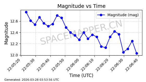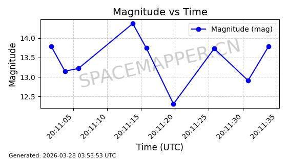 | 卫星名称 | AOE ID | NORAD ID | 发射日期 国际编号 | 在轨状态 | 轨道周期 | 轨道倾角 (度) | 近地点 (Km) | 远地点 (Km) | 偏心率 | 更新时间 (UTC) | 近期光变曲线 | 服务 |
