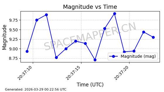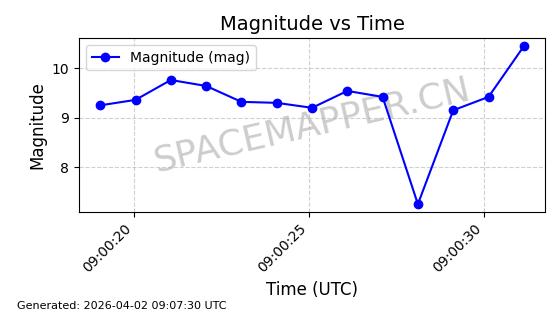 | MOLNIYA 2-9 | 7276 | 7276 | 1974-04-26 同日期轨道 1974-026A 同批次轨道 | 在轨 | 588分钟 | 64.4048 | 1322.772 | 32394.562 | 0.6685900 | 2026-03-29 21:20:38 | ||