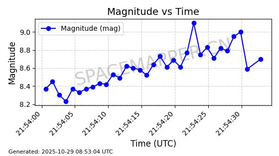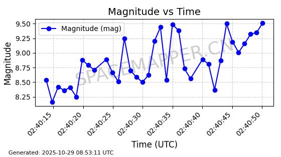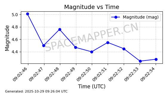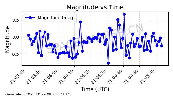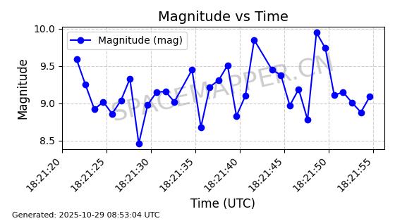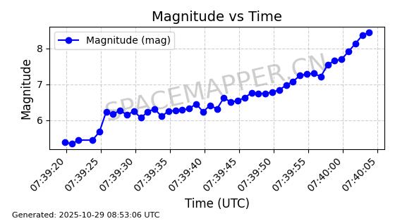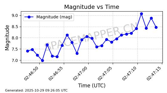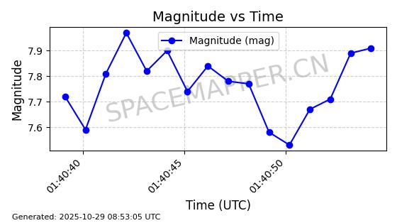 | ORBCOMM FM 25 | 25479 | 25479 | 1998-09-23 同日期轨道 1998-053E 同批次轨道 | 在轨 | 100分钟 | 45.0086 | 759.378 | 767.944 | 0.0005997 | 2025-10-27 12:50:56 | ||