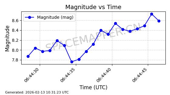 | ORBCOMM FM 13 | 25420 | 25420 | 1998-08-02 同日期轨道 1998-046H 同批次轨道 | 在轨 | 100分钟 | 44.9966 | 761.856 | 765.778 | 0.0002745 | 2026-02-16 05:07:50 | ||