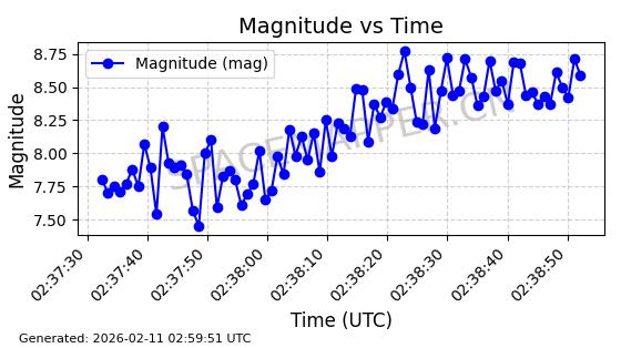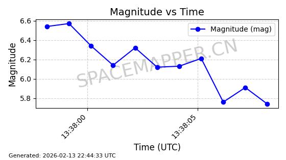 | ORBCOMM FM 38 | 33060 | 33060 | 2008-06-19 同日期轨道 2008-031A 同批次轨道 | 在轨 | 97分钟 | 48.4372 | 618.023 | 624.073 | 0.0004321 | 2026-02-15 21:22:03 | ||