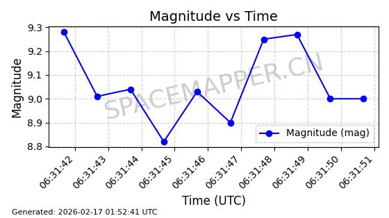 | ORBCOMM FM 9 | 25116 | 25116 | 1997-12-23 同日期轨道 1997-084E 同批次轨道 | 在轨 | 100分钟 | 45.0145 | 733.559 | 742.497 | 0.0006279 | 2026-02-16 00:42:07 | ||