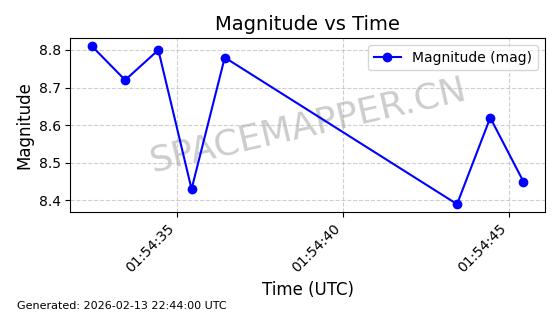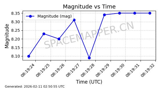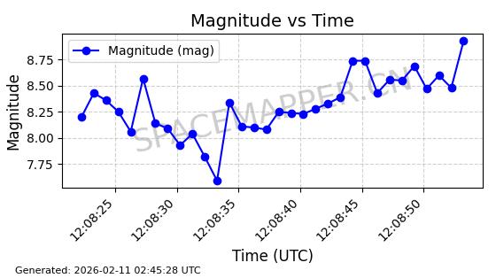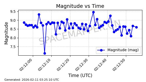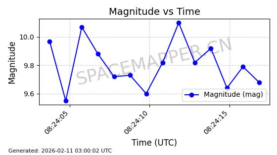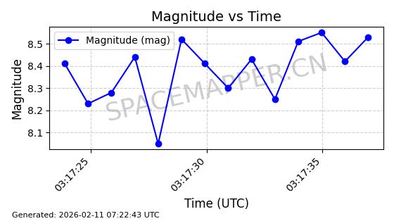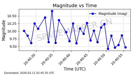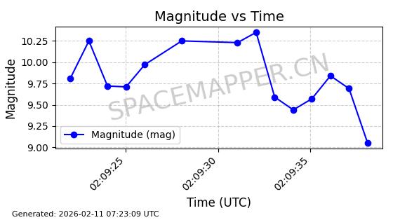 | ORBCOMM FM 11 | 25114 | 25114 | 1997-12-23 同日期轨道 1997-084C 同批次轨道 | 在轨 | 100分钟 | 45.0134 | 733.281 | 741.839 | 0.0006013 | 2026-02-16 00:19:44 | ||