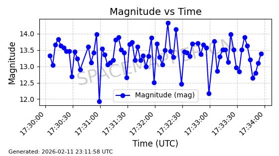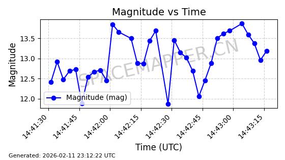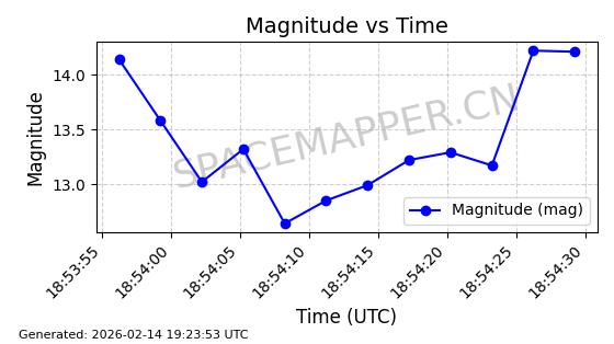 | RADUGA 14 | 14725 | 14725 | 1984-02-15 同日期轨道 1984-016A 同批次轨道 | 在轨 | 1436分钟 | 8.8040 | 35779.354 | 35780.544 | 0.0000141 | 2026-02-15 21:22:22 | ||