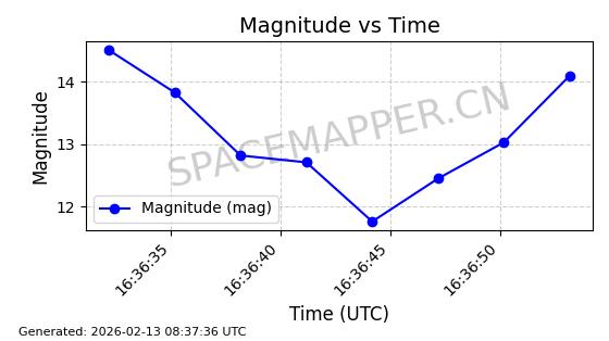 | RADUGA 13 | 14307 | 14307 | 1983-08-25 同日期轨道 1983-088A 同批次轨道 | 在轨 | 1467分钟 | 9.7601 | 36306.062 | 36463.38 | 0.0018394 | 2026-02-16 02:46:39 | ||