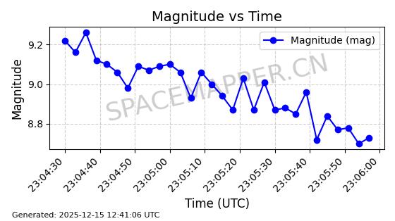 | AMC-15 | 28446 | 28446 | 2004-10-14 同日期轨道 2004-041A 同批次轨道 | 在轨 | 1436分钟 | 0.0343 | 35776.585 | 35796.993 | 0.0002420 | 2025-12-13 21:30:37 | ![]() | |