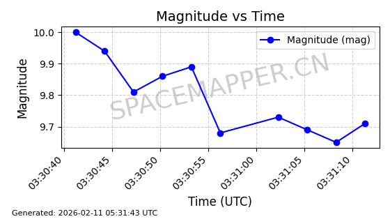 | O3B MPOWER F7 | 62362 | 62362 | 2024-12-17 同日期轨道 2024-244A 同批次轨道 | 在轨 | 288分钟 | 0.0677 | 8056.975 | 8074.821 | 0.0006177 | 2026-02-16 03:24:01 | ![]() | |