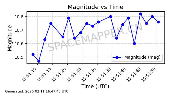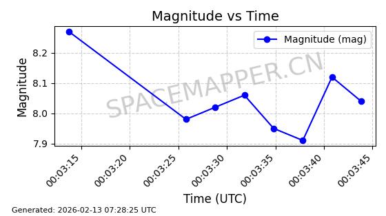 | O3B MPOWER F8 | 62363 | 62363 | 2024-12-17 同日期轨道 2024-244B 同批次轨道 | 在轨 | 288分钟 | 0.0573 | 8056.188 | 8075.582 | 0.0006713 | 2026-02-16 02:36:30 | ![]() |