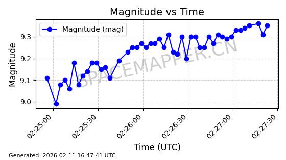 | NSS 9 | 33749 | 33749 | 2009-02-12 同日期轨道 2009-008A 同批次轨道 | 在轨 | 1436分钟 | 0.9471 | 35778.174 | 35795.008 | 0.0001996 | 2026-02-16 05:14:42 | ![]() | |