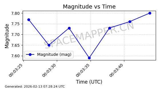 | O3B FM4 | 39189 | 39189 | 2013-06-25 同日期轨道 2013-031B 同批次轨道 | 在轨 | 288分钟 | 0.0578 | 8059.336 | 8072.446 | 0.0004538 | 2026-02-12 05:27:51 | ||