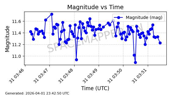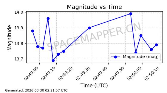 | 卫星名称 | AOE ID | NORAD ID | 发射日期 国际编号 | 在轨状态 | 轨道周期 | 轨道倾角 (度) | 近地点 (Km) | 远地点 (Km) | 偏心率 | 更新时间 (UTC) | 近期光变曲线 | 服务 |