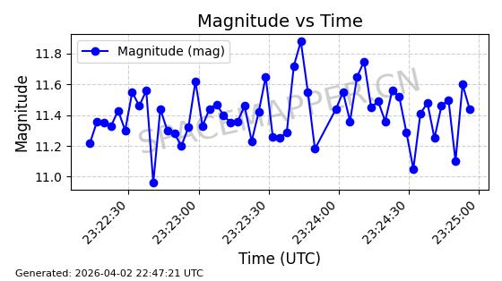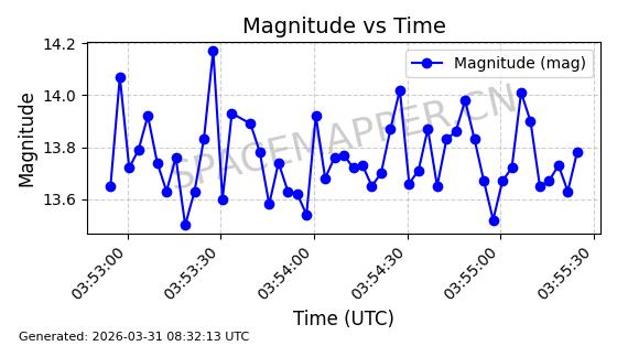 | 卫星名称 | AOE ID | NORAD ID | 发射日期 国际编号 | 在轨状态 | 轨道周期 | 轨道倾角 (度) | 近地点 (Km) | 远地点 (Km) | 偏心率 | 更新时间 (UTC) | 近期光变曲线 | 服务 |