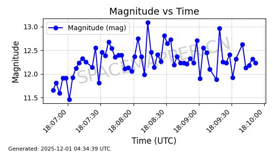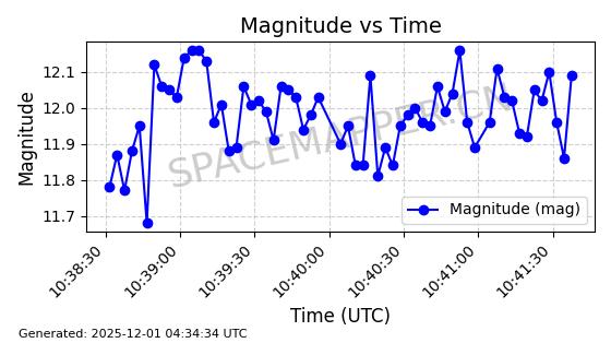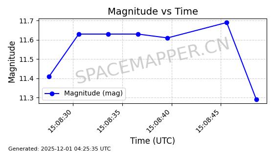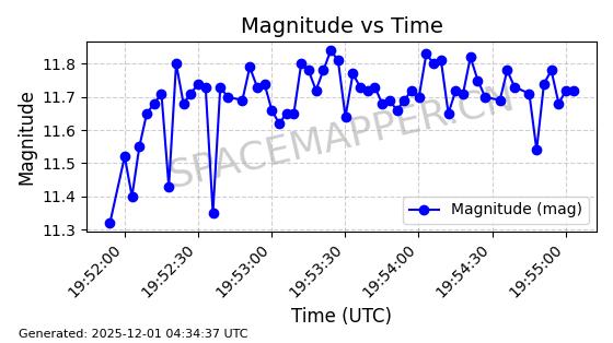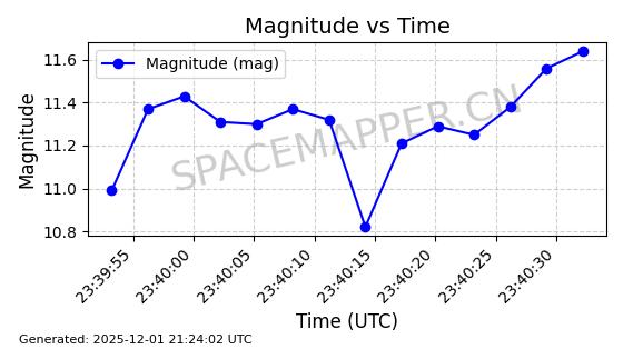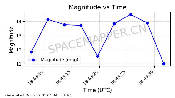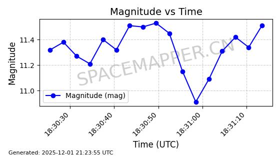 | BEIDOU 3M11 | 43602 | 43602 | 2018-08-24 同日期轨道 2018-067A 同批次轨道 | 在轨 | 773分钟 | 54.1832 | 21502.898 | 21553.89 | 0.0009136 | 2025-11-30 18:30:45 | ||