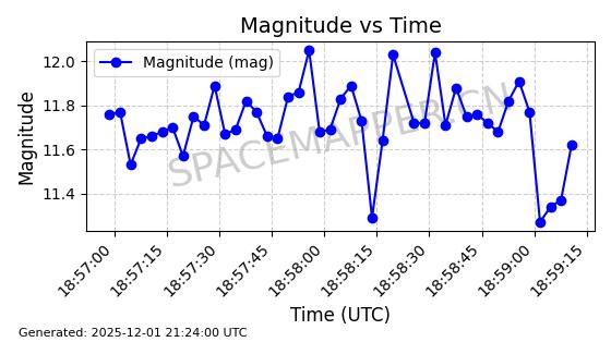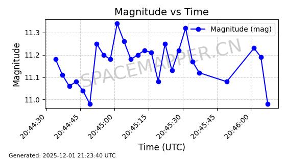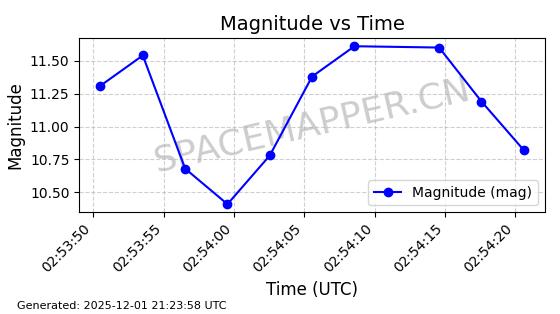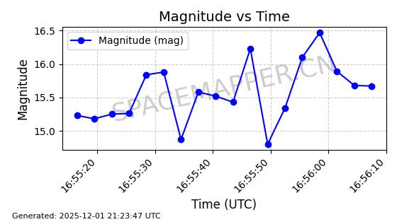 | BEIDOU-3 M25 | 58654 | 58654 | 2023-12-26 同日期轨道 2023-207A 同批次轨道 | 在轨 | 773分钟 | 55.5745 | 21522.771 | 21533.617 | 0.0001943 | 2025-12-01 03:53:10 | ||