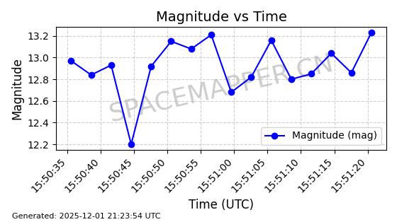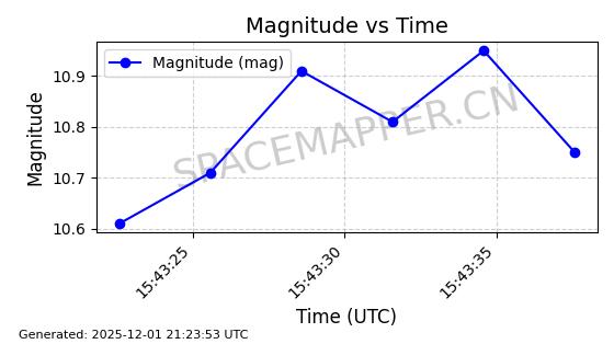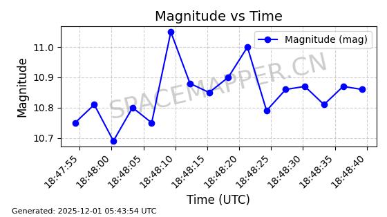 | BEIDOU 3M15 | 43647 | 43647 | 2018-10-15 同日期轨道 2018-078A 同批次轨道 | 在轨 | 773分钟 | 54.2730 | 21508.61 | 21547.278 | 0.0006928 | 2025-11-30 21:15:37 | ||