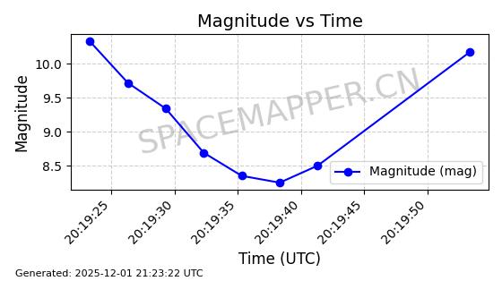 | BEIDOU 3M20 | 44865 | 44865 | 2019-12-16 同日期轨道 2019-090B 同批次轨道 | 在轨 | 773分钟 | 56.3845 | 21487.267 | 21568.821 | 0.0014612 | 2025-12-01 04:44:21 | ||