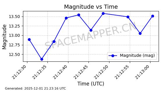 | BEIDOU 13 | 38251 | 38251 | 2012-04-29 同日期轨道 2012-018B 同批次轨道 | 在轨 | 773分钟 | 55.8317 | 21484.476 | 21571.952 | 0.0015673 | 2025-11-30 23:35:43 | ||