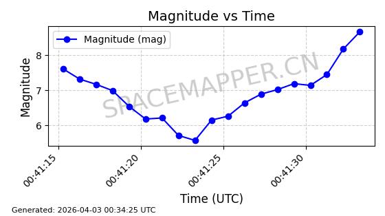 | JILIN-1-03 | 41914 | 41914 | 2017-01-09 同日期轨道 2017-002B 同批次轨道 | 在轨 | 94分钟 | 97.1979 | 441.348 | 452.644 | 0.0008275 | 2026-04-02 07:02:55 | ||