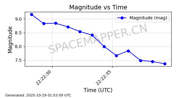 | CAPELLA-9 (WHITNEY) | 55910 | 55910 | 2023-03-16 同日期轨道 2023-035C 同批次轨道 | 已陨落 | 88分钟 | 43.9596 | 183.826 | 202.812 | 0.0014445 | 2025-03-28 20:29:36 | ![]() | |