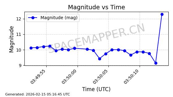 | FLOCK 4Q 15 | 58319 | 58319 | 2023-11-11 同日期轨道 2023-174BR 同批次轨道 | 在轨 | 93分钟 | 97.3956 | 397.093 | 405.577 | 0.0006257 | 2026-02-16 04:35:42 | ![]() | |