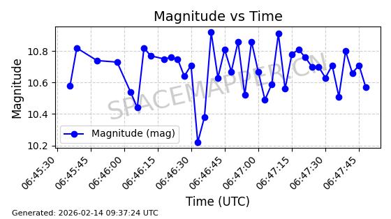 | GOES 14 | 35491 | 35491 | 2009-06-27 同日期轨道 2009-033A 同批次轨道 | 在轨 | 1438分钟 | 1.3753 | 35822.272 | 35837.814 | 0.0001841 | 2026-02-16 06:05:18 | ||