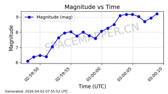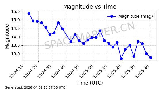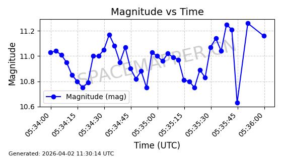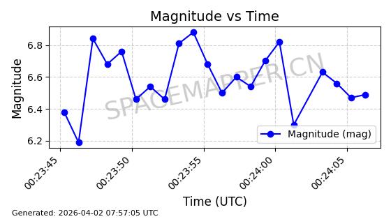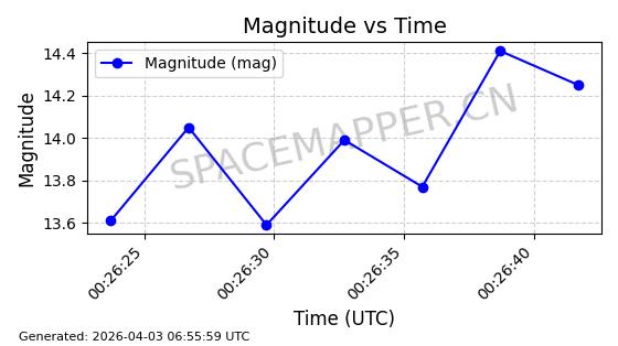 | FENGYUNG-4C | 67246 | 67246 | 2025-12-26 同日期轨道 2025-312A 同批次轨道 | 在轨 | 1436分钟 | 0.0384 | 35783.673 | 35789.341 | 0.0000672 | 2026-04-02 04:52:39 | ![]() |