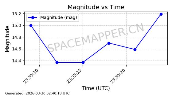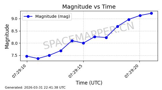 | 卫星名称 | AOE ID | NORAD ID | 发射日期 国际编号 | 在轨状态 | 轨道周期 | 轨道倾角 (度) | 近地点 (Km) | 远地点 (Km) | 偏心率 | 更新时间 (UTC) | 近期光变曲线 | 服务 |