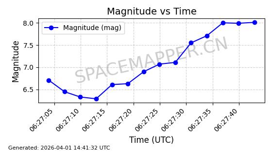 | FENGYUN 4B | 48808 | 48808 | 2021-06-02 同日期轨道 2021-047A 同批次轨道 | 在轨 | 1436分钟 | 0.0576 | 35762.393 | 35813.761 | 0.0006091 | 2026-04-01 20:28:22 | ||
