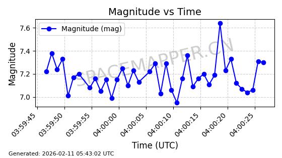 | METOP SG-A | 65159 | 65159 | 2025-08-13 同日期轨道 2025-172A 同批次轨道 | 在轨 | 101分钟 | 98.6808 | 819.301 | 820.945 | 0.0001141 | 2026-02-16 03:45:35 | ![]() |