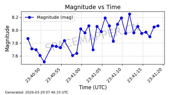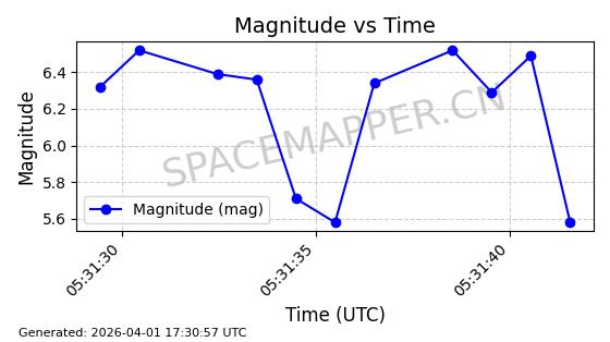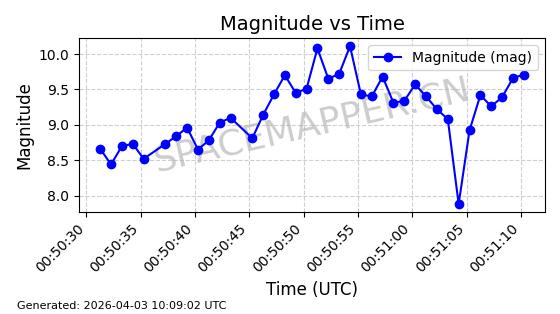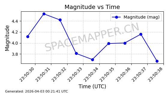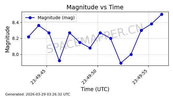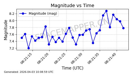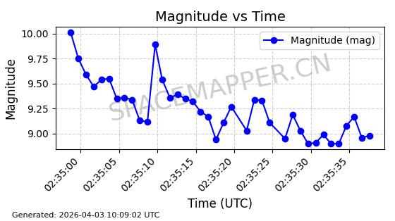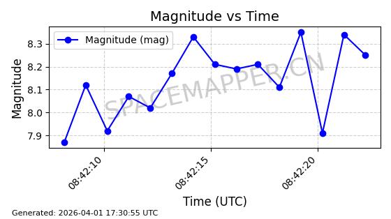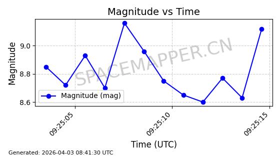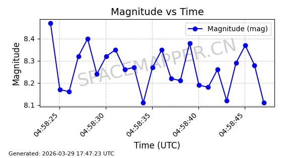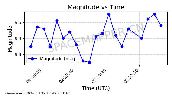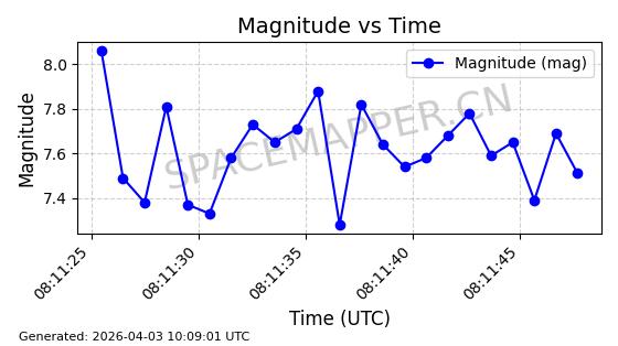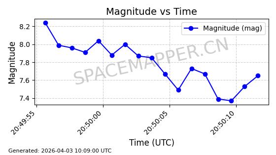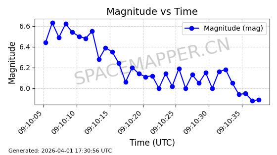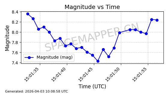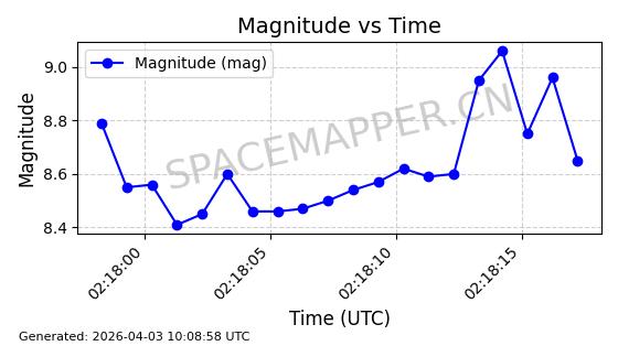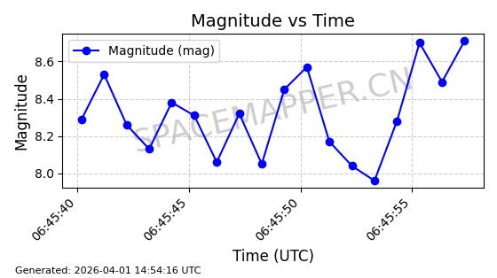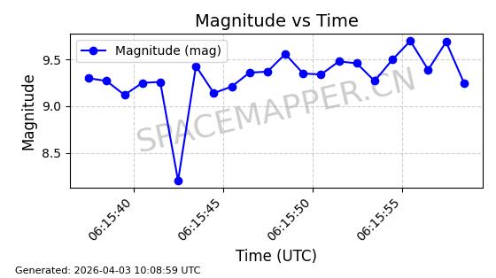 | METEOR 2-20 | 20826 | 20826 | 1990-09-28 同日期轨道 1990-086A 同批次轨道 | 在轨 | 104分钟 | 82.5211 | 939.073 | 957.185 | 0.0012360 | 2026-04-02 04:44:33 | ||
