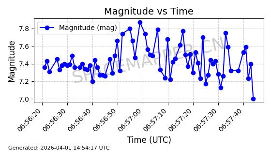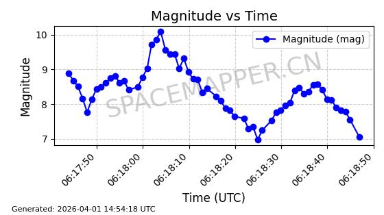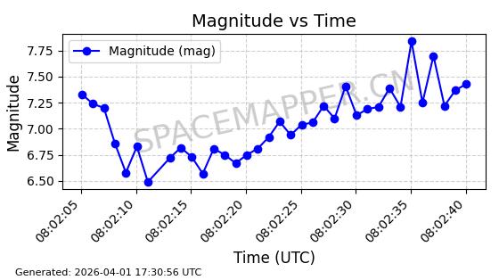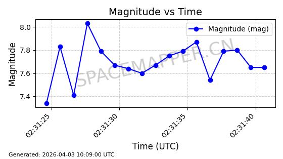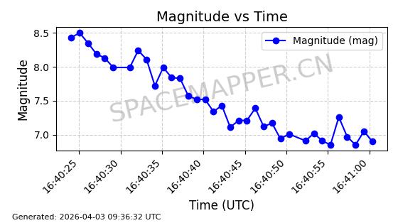 | METEOR 1-17 | 7274 | 7274 | 1974-04-24 同日期轨道 1974-025A 同批次轨道 | 在轨 | 102分钟 | 81.2146 | 851.018 | 875.306 | 0.0016770 | 2026-04-02 06:14:37 | ||