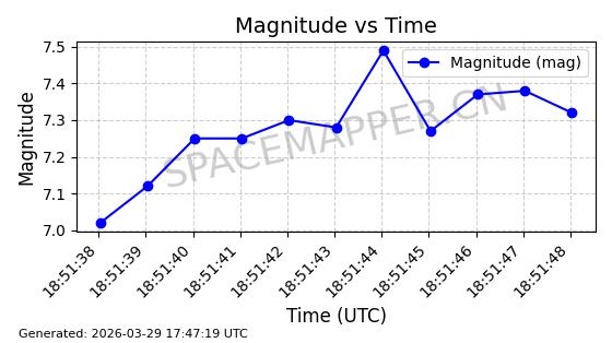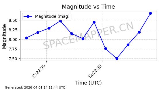 | METEOR 1-11 | 5917 | 5917 | 1972-03-30 同日期轨道 1972-022A 同批次轨道 | 在轨 | 102分钟 | 81.2322 | 827.315 | 896.507 | 0.0047784 | 2026-04-02 05:35:36 | ||