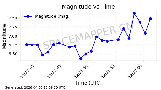 | METEOR 1-15 | 6659 | 6659 | 1973-05-29 同日期轨道 1973-034A 同批次轨道 | 在轨 | 102分钟 | 81.1891 | 838.347 | 876.727 | 0.0026521 | 2026-04-02 03:14:10 | ||