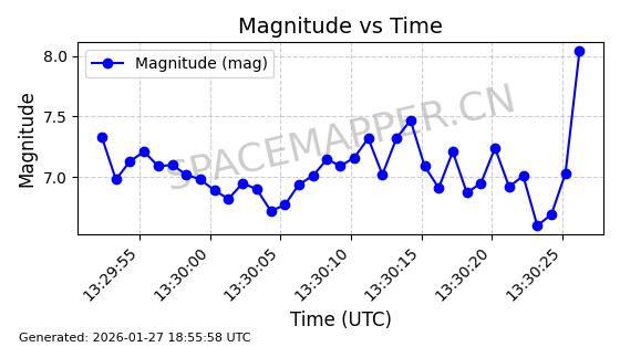 | CAPELLA-17 (ACADIA) | 64583 | 64583 | 2025-06-23 同日期轨道 2025-135BH 同批次轨道 | 在轨 | 97分钟 | 97.7557 | 592.849 | 600.915 | 0.0005782 | 2026-01-27 06:58:45 | ![]() | |