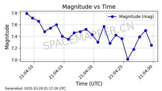 | FENGYUN 4B | 48808 | 48808 | 2021-06-02 同日期轨道 2021-047A 同批次轨道 | 在轨 | 1436分钟 | 0.1458 | 35742.343 | 35831.573 | 0.0010581 | 2025-10-27 22:07:42 | ||